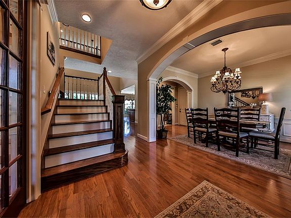 Spectacular home with 5 bdrms, 4.5 baths, 3 car garage in the neighborhood of Southern Garden. Enjoy the quiet cul-de-sac from the covered front porch or relax near the pool/spa with the added privacy of a greenbelt & oversized lot. Master, plus additional bedroom located on first floor. Study & formal dining. Three bdrms & game room located on second level. Wood flooring throughout living spaces downstairs. Upstairs carpet updated in 2012. Stainless steel kitchen appliances updated in 2015.