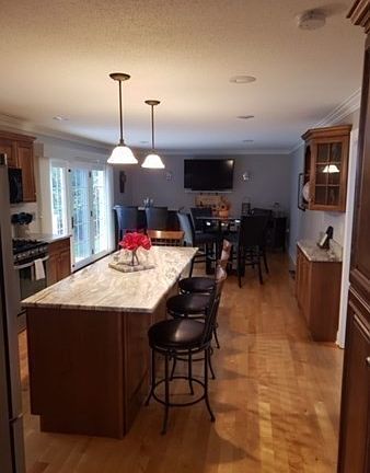 - Kit Dscrp: Flooring - Wood, Countertops - Stone/Granite/Solid, Kitchen Island
