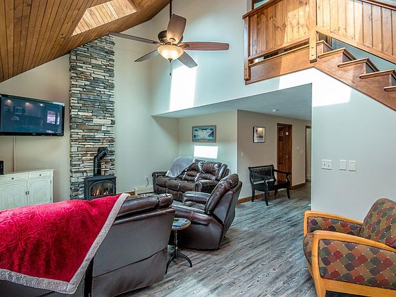 PRICE IMPROVEMENT! Three level furnished Townhouse in low tax Bartlett! Thoughtful updates and attention to detail throughout; from the granite countertops in the kitchen to the wood cathedral ceilings that elevate the living spaces, mixing a blend of comfort and style. The kitchen, with its modern appliances and spacious island, is a chefs delight and a focal point for social gatherings. The living area, with its handsome stone hearth and gas stove, promises warmth and ambiance, making it an inviting space to unwind. The two upper-level bedrooms with their shared jack and jill bathroom, offer privacy and convenience, making this layout ideal for families or guests. The finished lower level adds an extra layer of versatility to the home, providing a spacious area for entertaining and additional sleeping quarters, ensuring there's ample room for everyone. Centrally located for spring-skiing or local shopping and restaurants. Looking for a place to make memories? This could be it!