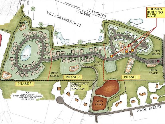 WELCOME TO WEATHERVANE! Carver's newest 55+ condominium with Phase 1 consisting of 24 units (8 triplexes that live like single family homes). Located in Carver on the Carver/Plymouth line next to the Village Links Golf Course in Plymouth and across from the Plymouth Municipal Airport. Several homes with golf views! 3 Eagle Terrace is our popular 'Links' ranch design! Enter through gorgeous farmers porch perfect for a morning cup of tea in a rocking chair. Open space design connecting the kitchen, dining, living, & sunroom with towering cathedral ceilings! Primary suite and guest suite off to both sides of open area giving guests comfortable space of their own with plenty of separation. Spacious primary suite complete with two closets, walk-in tile shower, double vanity, & water closet. A beautiful layout perfect for anyone looking to downsize! 2 car garage!! TO BE BUILT** This house design & any others offered in our Marketing Package can be built on any of our available lots