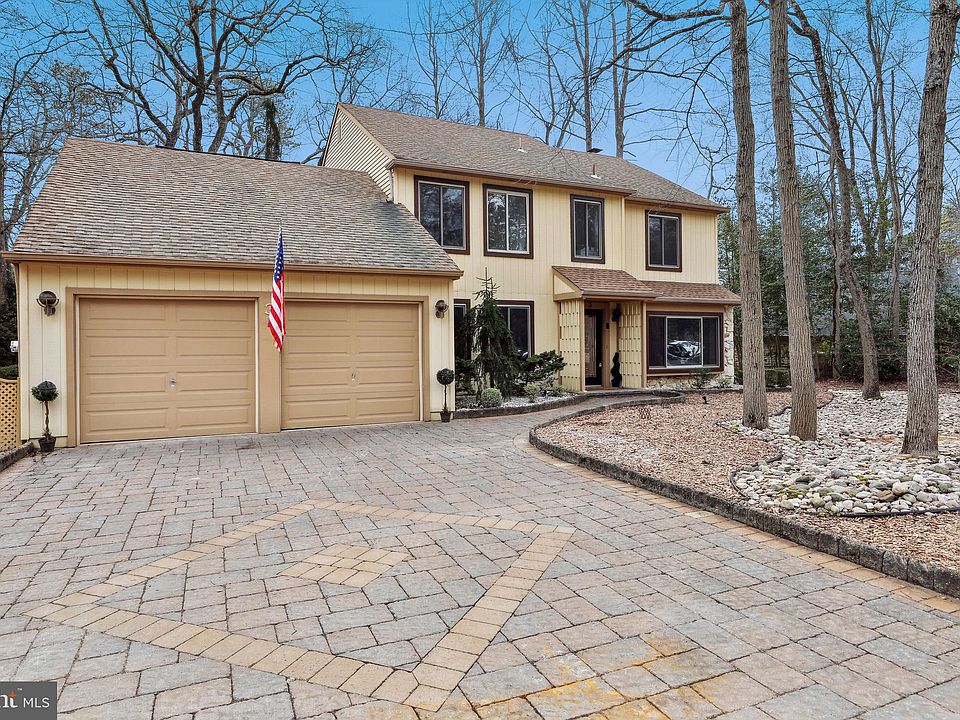 Buyer's financing fell through so back on the market! Welcome to this stunning 4 bedroom, 2.5 bath sanctuary on .25 acres nestled in the highly desirable Kings Grant community of Marlton, New Jersey. Enter through the foyer, where NEW luxury flooring and upgraded moldings span the main level. Formal living room with large window seat to your right and spacious dining room to your left. The eat-in kitchen showcases NEW shaker style soft close cabinets, open shelves, NEW quartz countertops, an island with extra storage and seating for three, a stylish tile backsplash, NEW stainless steel appliances including refrigerator, five burner gas range, dishwasher and microwave- complete with oversized windows overlooking the serene woods and an expansive deck—an ideal spot for outdoor cooking and entertaining friends and family. Wooded area behind the deck for extra privacy but can be cleared for a larger yard space(Survey attached). The den seamlessly connects to the kitchen, creating a harmonious flow between the two spaces, it also features a cozy gas fireplace and a sliding door leading to a large sun room which lets in plenty of light. The main level hosts the laundry room, with easy access to the spacious garage and extra storage area/office or bonus room inside. Venture upstairs via the NEW carpeted stairs to see four very spacious bedrooms. The master suite features a full bathroom complete with a NEW vanity and a walk-in closet. An additional full hall bath with upgraded NEW tile, NEW double vanity and linen closet complete the second level. NEW Furnace and NEW hot water heater with transferrable warranty for the buyer. Freshly painted! Recessed lighting throughout. Upgraded paver driveway, 2 car garage and beautiful upgraded plants. YARD IS IN THE PROCESS OF BEING CLEARED AND SODDED. Within the Kings Grant community, residents enjoy an array of amenities, from a private beach and lake to biking and walking trails, fishing and kayaking opportunities, tennis and basketball courts, roller hockey rink, volleyball, baseball fields, and the community pool. This house is close in proximity to The Links Golf Course and the Black Run Preserve. Whether you're an outdoor enthusiast or seeking a vibrant community atmosphere, Kings Grant caters to diverse lifestyles. Don't miss out on the chance to make this remarkable home in Kings Grant your own. Experience a blend of comfort, sophistication, and community living in Marlton, New Jersey. Schedule a showing today and take the first step toward your new home!