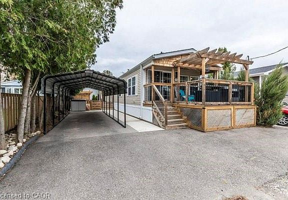 Welcome to 3 Elm Street located in one of the most sought after life-style communities in Southern Ontario, the beautiful Mini Lakes. You are close to everything you'll need when it comes to shopping, entertainment and healthcare. Also, moments away from the 401 at HWY 6 AND You own the land!!. This gorgeous private bungalow is ideal for empty nesters or first time home buyers offering 2 bedrooms and a spacious kitchen and living room that features an electric fireplace and a full bathroom. Outside you can spend time in your own little private oasis, equipped with maintenance free turf and a spacious shed. Residents in the Mini Lakes Community have the luxury of enjoying a heated pool, recreation center, trails, gardens, golf tournaments, card nights, a library and so much more. To add to all this it has a portable carport that fits 2 cars tandem. Half of the roof was replaced with a 25 year shingle and 10 year transferable warranty. Some windows have been replaced 2024 and 2025. The fridge was replaced this year and is stainless steel. This gorgeous home also features a nest thermostat and a nest smoke alarm! Come see this beautiful home for yourself, it is not something you'll want to miss!