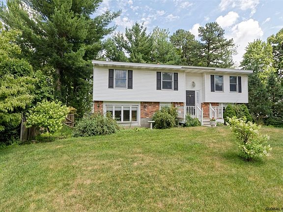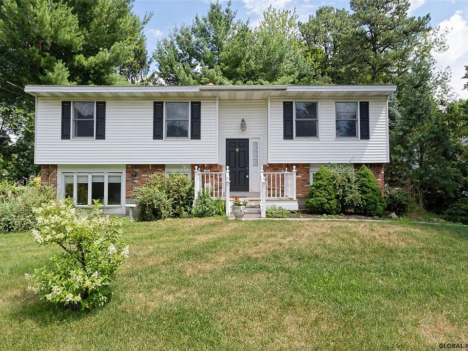 Located on a premium setting in the heart of Latham sits this nearly 3000 sq ft upgraded executive sized 4Br 3.5 bath raised ranch. Awesome eat in kitchen features soaring wood ceilings, sky lights, granite counters, chef quality SS appliances, and lots of windows allowing year round sunshine. Formal LR and DR great for entertaining and holiday parties. Large master suite w/ resort sized full bath. Hardwood floors throughout in addition to a large 4 season room, family room with gas fire place, home office area w/ private entrance, and over sized commercial quality 3 car garage great for hobby or car enthusiasts. Inground pool to be filled in unless buyer takes as-is. There is plenty room for in-laws and guests. North Colonie schools and walking distance to shopping & Colonie Town Library.