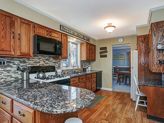 Beautifully maintained & loved 4BD/2.1BA Colonial! Rocking-chair front porch greets you. Hardwood floors on 1st level (under the carpeting). Convenient to hwys & train station! New roof 2013! Inviting open flow from eat-in kitchen to family room for easy living! Kitchen features granite countertops & custom back splash plus glass door to the deck. Tons of bright sunlight. Newly renovated powder room will delight. 4 bedrooms on the 2nd level - Spacious master bedroom has 2 walk-in closets & private bath with new vanity and granite countertops, separate shower & jetted tub. 3 additional bedrooms plus 2nd full bath. Enjoy the finished basement level with huge recreation space plus plenty of unfinished storage area too. Lovely back yard and deck..perfect size to maintain, host a BBQ & enjoy your outside living space. 2-car garage.