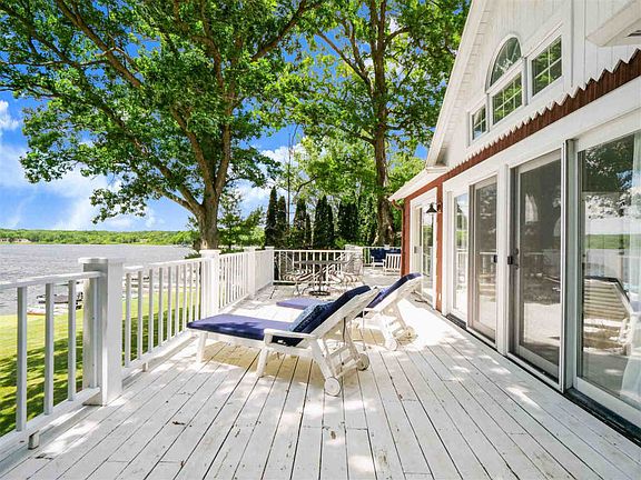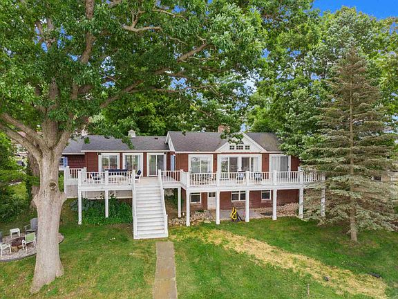 Get ready for gorgeous sunset views all summer w/ incredible 100 ft of frontage on Webster Lake! Deep lot on low traffic lane w/ lots of mature trees providing shade & privacy, sits this classic & cozy cottage w/ a cool nostalgic vibe. Well maintained w/ updates, this 3 bed, 2 full bath home is attractive & welcoming from the outside in. Facing west on almost half an acre lot, there are many outdoor attractions to keep you busy, including full concrete basketball court & gravel fire ring shielded from neighbors by evergreen tree-line. Best of all is massive, elevated, freshly painted wood deck facing water where you can watch amazing sunsets & even historic Dixie Paddle Boat float by! Ultimate quintessential lake cottage w/ lots of charming details, the exterior is cute as a button w/ wooden shingles, shutters & scalloped trim. Inside youâll be amazed by the quality of finishes from the beautiful original hardwood floors to custom build-ins. Newer white paint throughout makes the space feel bright & clean. Unique vaulted ceiling w/ wood accent paneling & skylight in kitchen make it a special place along w/ lots of cabinets, walk-in pantry, peekaboo interior window & white backsplash. Extra large living space w/ multiple sets of sliding glass doors to patio let in ambient natural light & excellent views. Split floor plan w/ kitchen in middle & stunning formal dining/sitting room w/ vaulted ceiling & word burning fireplace on other side. 2 of 3 main level bedrooms feature glass doors to deck, all bedrooms are good sized w/ ample storage throughout. Large walk-out basement has so much potential, could be extra sleep quarters, 2nd living space or rec room; full bath & laundry in basement as well. Full concrete basketball court provides hours of fun. Oversized detached garage steps from main house w/ room for additional parking. Webster is all sports lake known for fishing, boating & recreation. Thereâs still time to make this your best summer yet & build lots of new lake memories! Donât let it slip away!