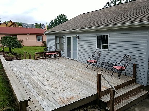 HOME WARRANTY INCLUDED! One level living.Main Level offer: 2 large bedrooms & office,full bath,large living rm open to the high end kitchen w/nothing but the best.New Range,modern lighting,granite countertops,soft close cabinets & drawers w/pull out shelves & plenty of storage.2nd Stry offers Owner's Loft w/potential for addit. bath in unfinished area.Lower Level Offers:option for woodstove for heat w/forced air back up.Large deck,mature trees & stone walkways.Carport & attached 2 car garage w/walk up storage space.All tucked away on a quiet street mins from the City of Corning.