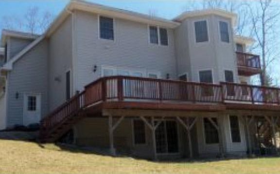 Exquisite Contemporary Colonial. Stone front. Open concept with two story foyer. Pride of craftmanship shows in every room. Granite kitchen with upgraded appliances open to the family room with lots of windows. Trex deck runs entire lenth of back of house overlooking conservation land. Study on 1st floor-luxurious master suite with jetted tub, tile shower, walk-in closet. This home has lots of tile, hardwood, crown moldings-awesome trey ceilings, and recessed lighting. Double staircase to 2nd floor. Lots of windows in basement with walk-out.