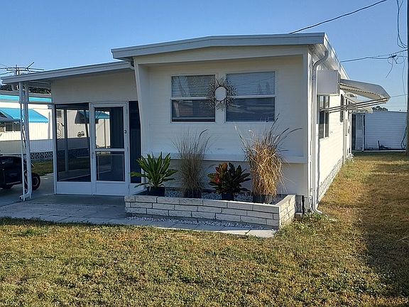 Cute and Cozy 2 Bedroom, 1 Bathroom Home, with spacious living area in 55+ park. Screened front porch, lots of upgraded windows with plantation blinds, new kitchen cupboards and countertop with deep farmhouse style sink and new quiet garbage disposal. New refrigerator, flat top stove with built in microwave above. Newly painted, nice size dining room surrounded by six windows. Bedrooms are small but functional. Master bedroom has four windows for lots of light and trimmed in white beadboard. Bathroom with new toilet, vanity and mirror. Tiled walk-in shower and shelving for linens. If it's open-living space you're looking for, then this is for you. All new flooring and large enclosed lanai with sunshades. Washer/Dryer, new hot water heater, covered two or three car drive and includes large shed. Located in Coach House Mobile Home Park, 3 Evergreen Ave., Palmetto, FL. Lot rent $990 includes cable, internet, water, sewer, garbage and mowing. 2 Pets Allowed. Amenities – large swimming pool, pickleball courts, putting green, shuffleboard, corn hole, dog park, resident workshop, 4 ponds, pool tables, 2 recreation halls, library. Lots of activities. Park approval is required prior to purchase.