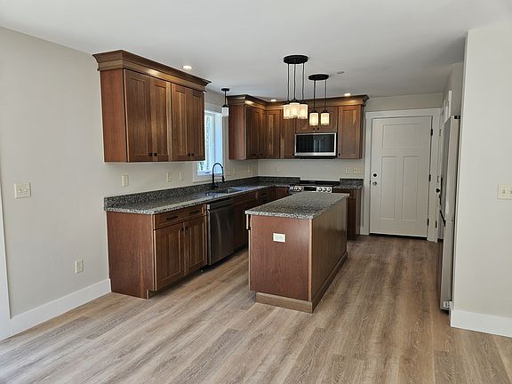 Brand New Construction! Home consists of 4 bedrooms, laundry & 2 full baths on the second floor. First floor has open living, dining and kitchen area, large deck and half bathroom. Lower level is partially finished. Direct entry 1 car garage. Home is heated and cooled with high efficiency heat pumps. Home comes complete with kitchen appliances and washer and dryer! Only 1 left... Tenant is responsible for all utilities (electric and sewer), plowing and mowing. Utilities cost unknow, new construction. 1 year minimum lease required. Pets considered on a case-by-case basis. Non-smoking property.