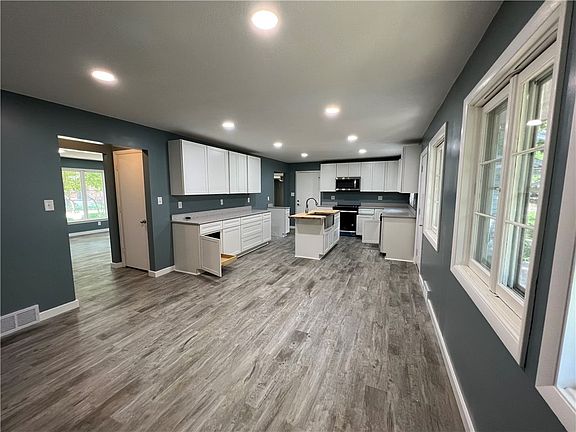 Gorgeous fully updated ranch w/ a partially finished walk-out basement offering an open floor plan w/ extremely large rooms. This powers lane home has been 100% renovated beautifully... brand new kitchen & baths, freshly floored and painted. If you prefer 4 bedrooms, the seller will transition the family room on the main level back to a 4th bedroom prior to closing. Many additional updates include new breaker box & power meter base, All new GFCI breakers and outlets, All new PEX plumbing and new exterior doors, reasonably newer roof and furnace panel. Such an awesome brand new space w/ large windows throughout (beautiful natural lighting), 2 fireplaces, fenced yard/ patio & fire pit (great for relaxation, yet small enough for easy maintenance) & a 2.5 car garage. The dining room & kitchen sizes cited are open to each other, so if you don't want a formal dining room, your kitchen can be 25' x 13'!!! If you are looking for a spacious & move in ready home, this IS the one for you!