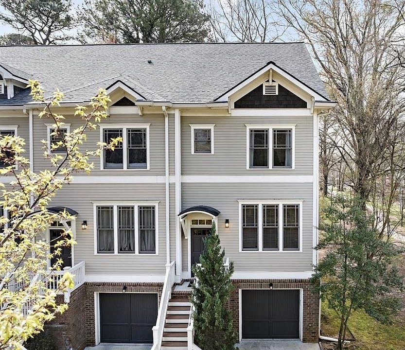It doesn't get more walkable than this gorgeous end unit townhome, just steps away from the vibrant Oakhurst Village in the City of Decatur. Endless parks, restaurants, and shopping await! Built as the model home with extra square footage and upgrades, this elegant townhome sits in a quiet and charming 12-unit community. Upgrades include additional windows, hardwood floors, wainscotting, crown molding, high ceilings, modern light fixtures, an electric fireplace and a large private deck off the living room. New 50-gallon water heater and HVAC are less than a year old. Step inside and be greeted by a light-filled dining room, an ideal spot for entertaining guests. Also on the main floor, the open-concept living room and kitchen are perfect for unwinding. The kitchen has beautiful cherry cabinets, stainless steel appliances, granite counters, stone backsplash, and a high-top breakfast bar. The upstairs includes two luxurious bedrooms, each with a full ensuite bathroom, alongside a laundry closet in the hall. The beautiful master bedroom has vaulted ceilings, large windows, and a transom window that floods the room with natural light. The master bathroom boasts a double vanity, an ample walk-in closet, and a spacious glassed-in shower with two benches and double shower heads, plus a third rainfall head. A prime third bedroom and full bath, a screened-in porch (perfect for relaxing), and a private garage with additional workspace and storage complete the lower level. Highly sought-after Decatur schools are within walking distance. Don't miss your chance to make this exceptional townhome your own and experience city living in style!