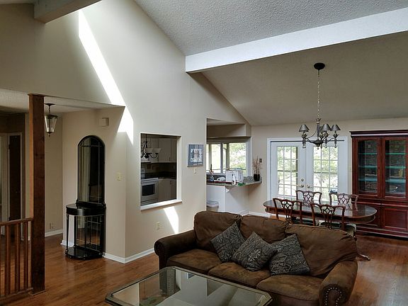 Natural light abounds in this spacious four bedroom home. The living room with vaulted ceilings overlooks the fabulous large screened-in patio space, a perfect place to take in all the surrounding nature. En-suite master bath was recently renovated. Refrigerator and dishwasher have also recently been upgraded. Downstairs is accessible from the interior and has an exterior entrance. The large multi purpose room features a wood burning fireplace and recently updated full bath.