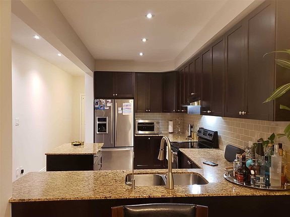 Stunning Town Home Just 7 Yrs Old With Park At The Back. This Home Shows True Pride Of Ownership. No Side Walk And Professionally Painted. Upgraded Hardwood Floors, Upgraded Kitchen Featuring Granite Counters, Backsplash, Jenn-Air Fridge, And S/S Appliances. This Open Concept Layout Is Functional And Perfect. Oversized Master Bedroom With W/I Closet And 5Pc Ensuite Featuring His And Her Vanity. Beautiful Rain Porch With Wooden Deck Overlooking To Park !!!!