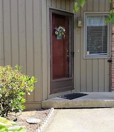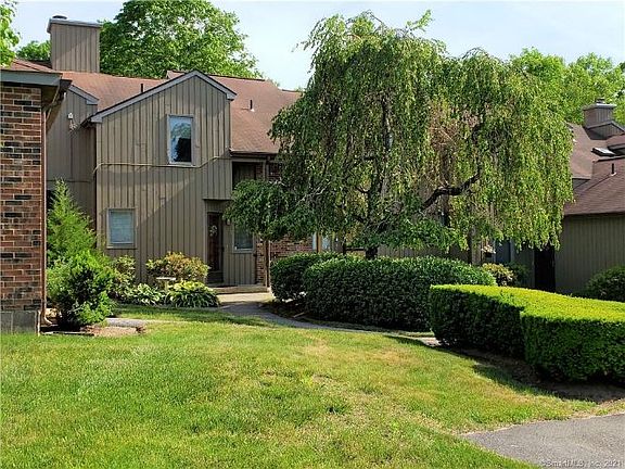 Private townhouse located in small Southbury complex. Main floor features eat-in kitchen with tile flooring leading to renovated kitchen with custom cabinets, Corian counters and tile flooring. Backsplash completes the look. Additionally, there is a food pantry and a half bath The living room features wood flooring and a wall of windows to allow plenty of natural light in. There is a also a door to the deck from which you have access to a large back yard area and a bridle trail. Moving on the second level you will find a large master bedroom with wood flooring, vaulted ceiling, skylight and ceiling fan. Windows allow for abundant natural light. A second bedroom offers a vaulted ceiling and ceiling fan, with wall to wall carpeting. A full bath with tile shower and flooring, glass shower doors and granite sink on newer cabinet completes the upper level. A finished basement with new carpeting, and a large storage laundry area, makes for 3 levels of living. Dishwasher and central air are new. Well maintained grounds add to the beauty of this complex. Conveniently located to I-84 and other state roads, shopping and downtown Southbury make this a must see property!