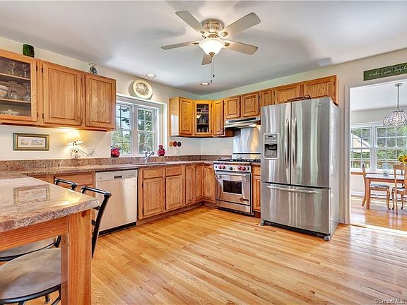 Part of the original Spencer Farm of over 7 generations, This custom-built, farmhouse cape offers all of the modern features you need with a hat tip to the history of this special property. The Open Floor Plan with soaring ceilings, fireplace with 1800's farmhouse mantel, hardwood floors, offers great space for entertaining. The large Kitchen Space with Top Line appliances from Wolf, Bosch, and Maytag, includes granite counters and breakfast bar that accommodates up to four. Fabulous Sunroom (currently used as Formal Dining Room) off the kitchen with vaulted ceilings, chestnut beams, pumpkin pine floors, and skylights. The large sun-deck and park-like grounds lead to a 30x30 outbuilding with full foundation just waiting to be transformed into a studio or workshop. And best of all, this home sits on a corner lot with a wonderful rocking chair front porch, less than one mile to our historic and bustling town green, shops, restaurants, and places of worship. Additional 3 rooms of finished space in Basement