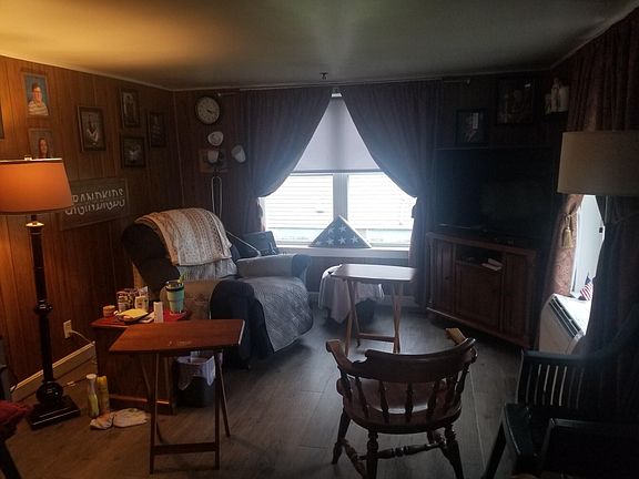 This solid well built home sits on a nice corner lot and has a two car garage, repaved driveway, deck, handicap ramp, metal roof on house and garage, sunroom, Corian kitchen counter top, first floor bedroom, full bath on first floor with walk-in shower, dining room currently set up as office area and laundry, could be converted back, two spacious bedrooms and a half-bath on the second floor. Well water and town sewer.