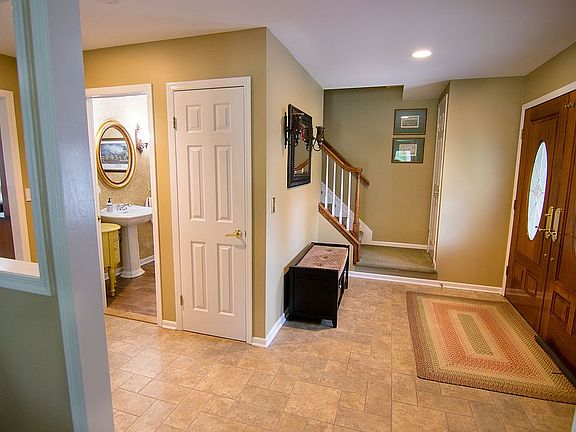 This beautifully updated Colonial is located on corner lot in desirable Heritage Greens neighborhood. First floor includes inviting tile foyer, living room, dining room, family room, powder room, newer eat-in-kitchen featuring stainless steel appliances, Soapstone & Silestone quartz counters, InSinkErator. Second floor: Master bedroom with vaulted ceiling, transformed Master Bath with double sink vanity, walk-in shower, temperature control flooring & 3 custom closets, additional 3 bedrooms, newer full bath, office, pull-down attic stairs. Additional spaces: partially finished basement, 2-tier maintenance-free deck with retractable awning & hot tub overlooking landscaped private backyard. Other features: central air, lawn irrigation system, vinyl shake-style siding, double entry front doors, wrap around front porch, hardwood floors, wood burning fireplace, ceiling fans, window treatments, plus much more. Community offers playground, basketball & tennis courts, jogging/biking path. Nearby schools, shopping, bus & rail transportation. This lovely, move-in condition home has it all...location, curb appeal & charm!