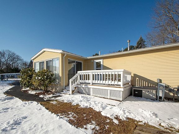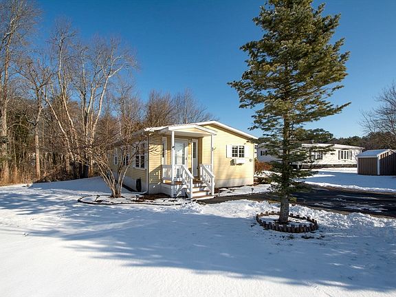 Enjoy the convenience of single-level living with this beautifully renovated two-bedroom, two-bathroom home on a private cul-de-sac at Leisurewoods. As you enter the house, you are greeted by a sun-drenched, open floor plan unit that features a spacious 11’ x 19’ living room with high ceilings; a completely renovated kitchen with granite counters, vinyl tile flooring, cabinets, and appliances; a dining area and a beautiful three-season sunroom. There are two bedrooms with large closets, including the main bedroom, which features an en suite full bathroom. There is an additional full bathroom in the hallway. The newer updates include windows, a gas furnace, central air, shades, and a water tank. Leisurewoods is a gated 55+ community. PROPERTY TAXES & TRASH PICK-UP are included in HOA.