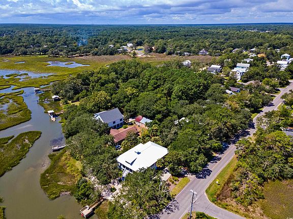 Here are a few key words that tend to get beach lovers attention: golf cart ride to the beach and possible views of Pawleys Creek over the one-story house behind. The house was a rental but has been empty for a few years. It will need major renovation or removal for new raised beach style home to be put on this lot. It is tucked in away from the main S. Causeway Rd providing a perfect location for peace and quiet. Great lot to put your beach house just off the beaten path while still having easy access to Pawleys Island fabulous and inviting beaches, restaurants, grocery stores, and other shopping. Please verify measurements and flood zone.