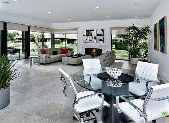 The owners spared no expense when gutting the original SHAUGHNESSY floorplan & renovating it to take full advantage of the stunning views of the 16th green, a water feature & a double fairway by adding 2 walls of windows. Your eyes go straight to the 3 floor to ceiling dual pane windows in the living room & the views. They invite the outside world in. All this started with a new expanded front courtyard and then work continued inside w/ its sleek architectural stance that gives it a kind of beautiful mid century style. In the kitchen the beauty of the quality wood cabinets, appliances & counters really shows. Gorgeous new bathrooms. One look & you can see the workmanship that went into every detail of this renovation. Another wall to wall window was added in the dining area to set the backdrop for the entire house. There are electric window shades in the public areas.Timeless renovation with sleek architectural style in The Springs CC.
