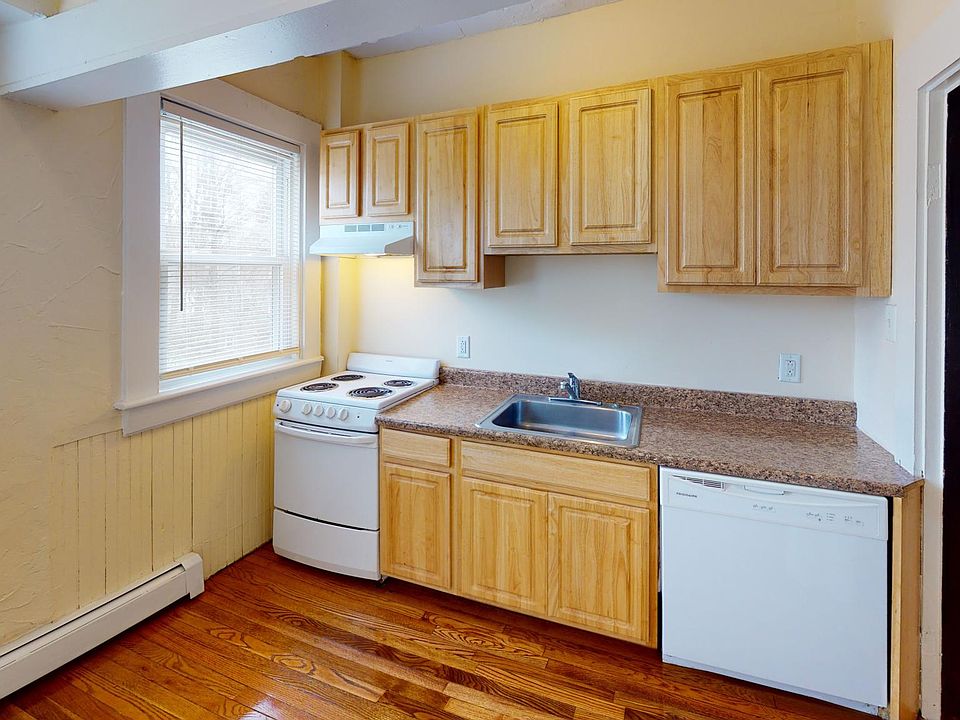 Renovated 3 Bedroom apartment: - Hardwood Floors Throughout - Newer vinyl windows - New cabinets and counter-top - Off street parking - Large bedrooms and closet space - Modern gas heating systems - Large yard - Slate tiled bathroom - Close access to the commuter rail, highway 24, public transportation, shopping and other amenities. - Secure building - Cable and internet ready - De-leaded - No pets - This unit is located on the 3rd floor Owner pays for water and sewer only.