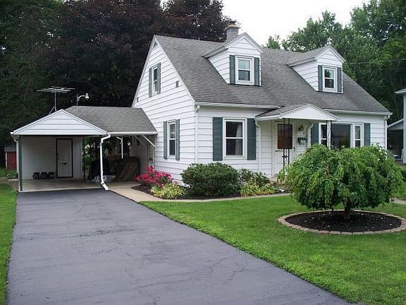 Wonderful village home with lots of amenities, new thermal windows, updated kitchen & bathroom, spacious living room & dining room, central air, central heating, along with stylist pellet stove, full heated basement w/workshop. Cozy sun room with views of manicured lawn and brick patio. Carport with enclosed storage & separate storage shed. All extremely well cared for. Close to Route I-86.