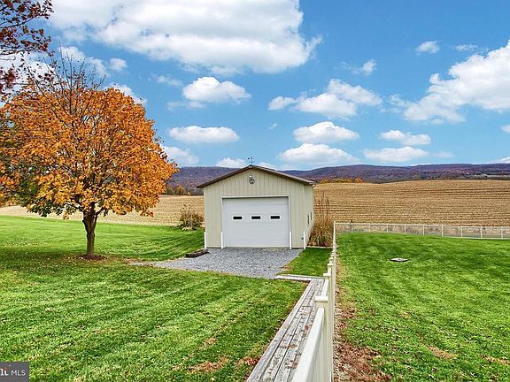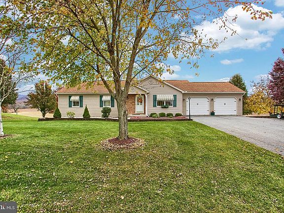 Just one look at the picturesque views of the rolling farmland and mountains, you'll want to call this HOME! This pristine ranch home offers cathedral ceilings. Kitchen has under cabinet lighting, dining area with atrium doors to 18'x19'4 Trex deck with stairs leading to covered brick patio with a "Tiki Bar" with electric, pull down storage and ready for entertaining enjoyment! The fenced yard leads to a 24'x30'x14' high private Morton Building w/electric, RV Receptacles, 16Wx12H door, 6'double door, 3'door. The Family/Game room on the walk out lower level offers built in lighted cabinets, powder room, gas fireplace, and additional storage and workshop. Whole house generator, owned propane tank, C/A, roof replaced in 2011. Come enjoy the outside as much as the inside!