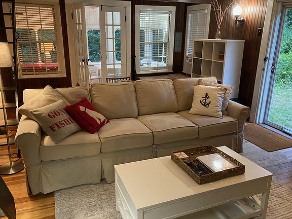 WEEKLY SUMMER RENTAL. Charming, completely furnished 3 bedroom/1 bath cottage in the heart of Manomet Bluffs, on Rabbit Pond, just steps from Churchill's Landing Beach in Plymouth, MA. Features Air Conditioning (Central Air) throughout, beautiful hardwood floors, vaulted ceiling living room, french doors, wood burning fireplace, washer/dryer, garage, tons of parking, huge yard, great outdoor shower. Cape alternative & only 50 minutes from Boston. Conveniently located off 3A near restaurants, CVS, library, liquor store, laundromat, grocery store, and more. Pets welcome for $100 cleaning fee. AVAIL WEEKLY JUNE THROUGH SEPT (2025), and MONTHLY ONLY OCT (2025) THROUGH MAY (2026). Rent includes all utilities: AC, electric, Comcast wireless package & generous cable TV plan). MONTHLY excludes propane heat from rent. Contact owner for updated schedule or for different options/price. Weekly price from JUNE through SEPT is $3000. Rental terms are SAT to SAT. WEEKLY SUMMER RENTAL 2025. PLEASE NOTE: This is a furnished 3 BR home at $3000/week. Inquire for off-season Oct-May 2025-2026 ($3,000/month). Contact owner regarding availability. Rental weeks are Sat-Sat. Rent includes electricity; AC, heat, water; wireless internet; satellite/generous cable package. Happy to entertain weekly renters in off-season when available. No full-year rental lease available.