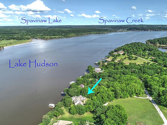 Beautiful Lake Hudson Bluff Water front home w/boat dock on 3.11 AC (2 lots) Lot # 3 has 1.69 acres, Lot # 4 has 1.42 acres with 212' of water frontage. Custom thru-out, Class 4 high impact roof installed on 6/10/2020. Completely re-painted 10/14/2019. Granite, wired shop, Working Light house with nautical chambers. Gated community with plenty of privacy in small subdivision. Short distance to Pryor, Adair, Langley and Vinita, Lower Grand Lake 25 min. away.