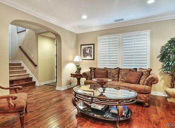 Back on the Market! Absolutely Fabulous Mille Fleurs Plan 3 with 5 Bedrooms, 5.5 Baths, and a Three Car Garage. Rarely on the market, Details include a Large Premium lot features a Serene Private Gated Courtyard, a Romantic Climbing Rose Trellis walkway to the Entertainers back yard with Custom Stone BBQ with Refrigerator, sink and extra Burners to keep the beans and BBQ sauce warm. The Tranquil Fountain and the Covered Patio ensure you and your guests enjoyment. The Stunning Chefs Delight Kitchen boasts Custom Cabinets, Gorgeous Granite Counters and Center Island, Full Tile Backsplash, Stainless Appliances, Double Ovens and a Walk Through Butlers Pantry and overlooks the Family Room with a Romantic Stone Fireplace. The Relaxing Jetted Tub in the Master Bath calls to you after a hard days work. All Bedrooms feature an ensuite Bathroom. The Private Casita is an Ideal Guest Room or the perfect Office when working from home. This Must See Home is located in the Award Winning Village of Woodbury that features a Resort Lifestyle with 9 Swing pools, 4 Lighted Tennis Courts and 16 Parks including the Fabulous Jeffrey Open Space. World Class Shopping is just minutes away and local boutiques and Restaurants as well as a Trader Joes and Ralphs are just steps away.