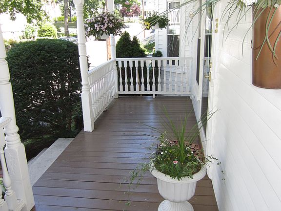 Bright and sunny Highlands Victorian - You will love all the windows, high ceilings, crown mouldings, plaster medallions and fabulous kitchen!! Sliders off the dining room lead to an ideal "Morning Coffee Spot" with sun and an awning! Full bath on each floor, four bedrooms, newer Thermo windows, third floor bedroom or great office and fabulous gardens make this a prized home. Bus to Oak Grove at end of street, short walk to train to Boston!!