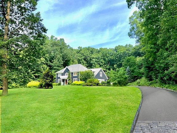 Elegant colonial set back from road on 3.22 private landscaped acres. Recently painted inside and out, with new roof 2019. Front porch opens with large entry hallway with soaring ceilings to second floor. On the left a pretty living room, with excellent size dining room on right. Large updated eat in kitchen with french doors to deck. Seamless flow to den with built ins. and fireplace. Private home office or guest bedroom. Half bath, laundry and back stairs to second level. Walk out access to three car garage with plenty of storage. Wide staircase leads to double doors into master suite, with walk in closet, full bath and separate shower. Three additional good size bedrooms and family bathroom. Full basement and lovely grounds complete this wonderful home. Lockbox will be installed on Saturday 14th.