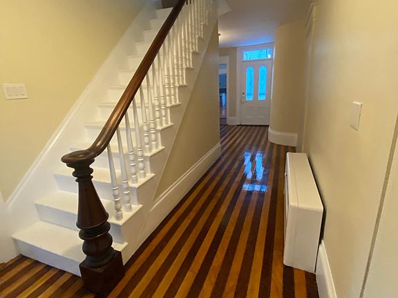 Welcome to 3 Gambo rd. This freshly painted throughout, well kept, three Bedroom, three bathroom home boasts 2200 square feet and sits on one acre, This home is available for rent April 1st. As you enter this beautiful home you will find a large dining room with a serving window beside the door that passes through into a spacious kitchen. The kitchen features an island with bar seating as well as custom built in cabinetry. As you head down the hallway, you will notice the unique hardwood flooring, rounded corners, and mahogany banister. The front doors open up to a shared wrap around covered porch with seasonal water views of the pond across the street. Then, at the end of the hallway is a large living room space to enjoy all the sunlight coming in from the many windows and original stained glass. There is an office space as well so you can stay focused if working from home. Heading upstairs you will find the master bedroom with ample closet space spanning an entire wall. Some windows facie a pond and others face epic sunsets. There is also a large master bathroom with a brand new toilet and oversize shower. The large second bedroom features a walk-in closet. Down the hall is the third bedroom. There are two other closets in the hallway for extra storage. The common bathroom upstairs has a beautiful newly tiled shower with original porcelain tub, and brand new toilet. There are nine foot ceilings, a curved archway, and Victorian style rounded walls all throughout the house. So much character and truly a gem! The property is located only 13 minutes from Portland and eight minutes to North windham. It is in the Sebago Lakes region and Windham School district. At the end of the street you will find the Gambo recreation area which has community soccer fields, swimming, fishing, a kayak/canoe boat launch on the beautiful Presumpscot River, the Sebago to the sea trail, mountain division trail, and the Gambo preserve. The Sebago to sea trail offers miles of paved recreation trails that reach the ocean. Great for hiking, running, snowshoeing, snowmobiling, cross-country skiing, and more. This rental comes with one garage space plus Three to Four additional driveway parking spaces. Hot water, plowing and heat included (with the exception of the front living room which is heated by a high efficiency heat pump) One year lease, First month and security deposit required. no smoking. no pets This rental comes with one garage space and three to four additional driveway parking spaces. Hot water, plowing and heat included (with the exception of the front living room which is heated by a high efficiency heat pump). No showings without Zillow rental application submitted and Good credit required. Background check and references required.