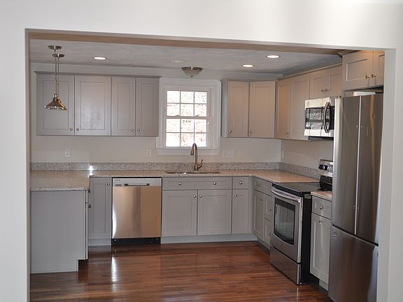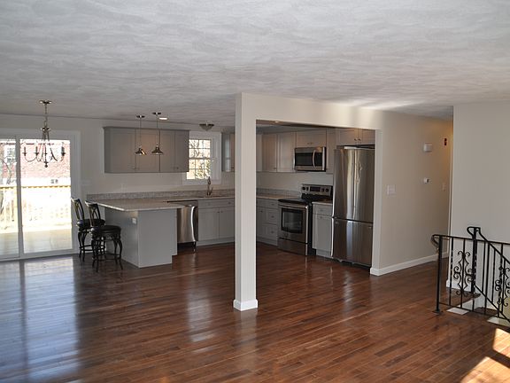 Commuters dream located in much sought after West side location on a private 5 lot Cul-de-sac handy to public transportation, major highways and shopping. This home has been completely and tastefully remodeled throughout, including new kitchen with Shrock maple cabinets, full extension premium smart stop drawer glides, breakfast bar and solid Atlantic salt quartz counter top with 4 inch back splash and new stainless steel kitchen appliances. New hardwood floors throughout second floor living area. Open concept kitchen, dining and living area with new slider to 12x12 deck, great for entertaining. Recessed and custom lighting. New bath, tiled floor with laundry up and marble top vanity. New bath, tiled floor down. Upgraded electrical and new plumbing throughout. New interior trim and windows. First floor front to back living room with fireplace, recessed lighting and slider to large level back yard. 21x12 drive under garage and newly paved driveway. Nothing to be done but make it yours.