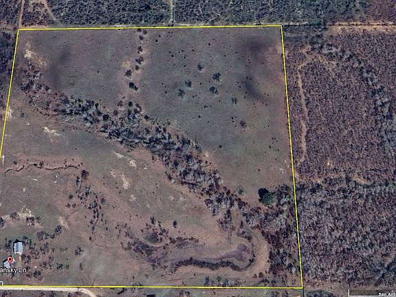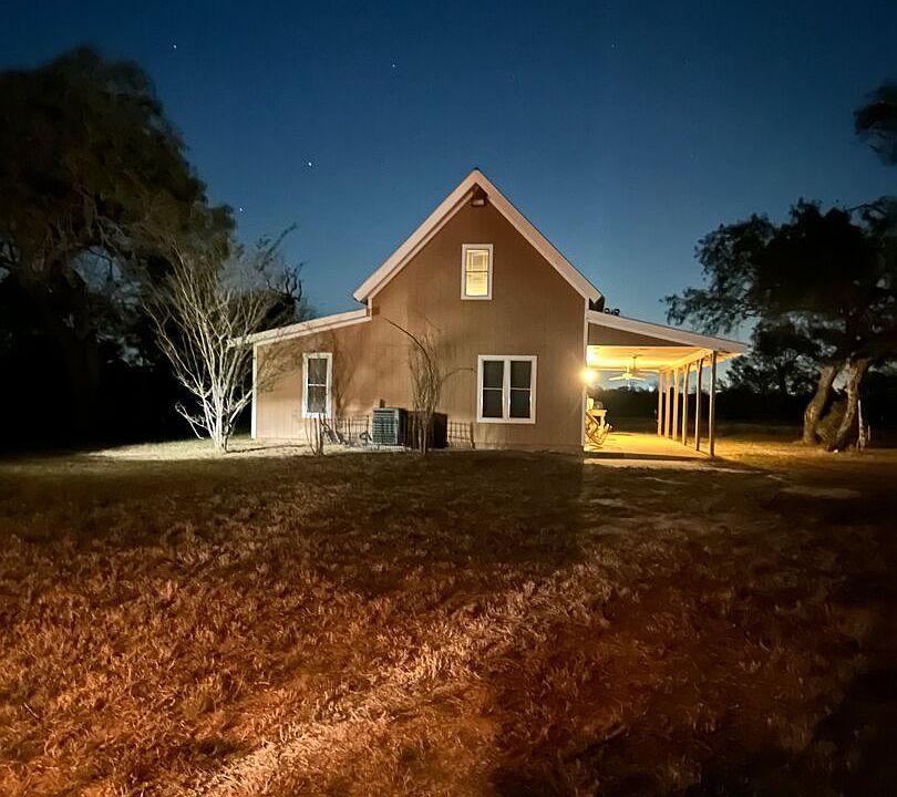 57.7 AC with 2/2 home and shop/garage. Property has wet weather creek (dry at this time). Home furnishings, blinds, and feeders to remain. Washer and dryer in shop. BBQ pit. Great country views. Deer, dove, turkey, etc. Easement drive to house. McCoy water and Karnes Electric are utility suppliers. New Septic to house. Get it while it's hot!