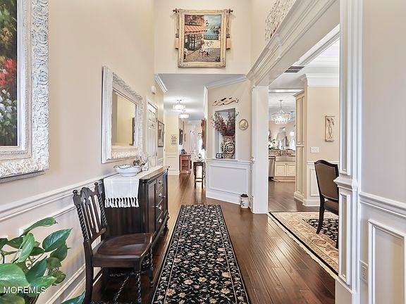 This Truly Elegant Home is offered for the first time and loaded with options only a designer could in-vision. Home was extended 7 feet off the back from the original plans. Massive Living room w/Coffered Ceilings and open to Chef's Kitchen w/Premium Granite counters & stainless appliances. Decorative moldings througout, upgraded hardwood floors, Stained Glass, Custom floor to ceiling fireplace w/mantle, beautiful lighting fixtures, Paver patio and so much more! State of the art Club house with indoor and outdoor pools, card room etc. Near GSP, Rt 9. and Long Beach Island. Remainder of 10 year home warranty included. Plans on listing and square footage DON'T reflect the 7 foot addition/extention