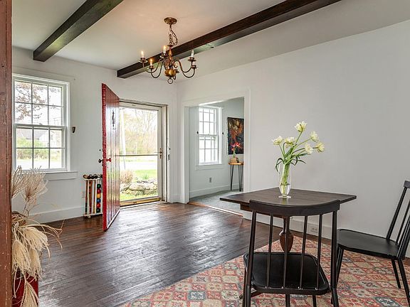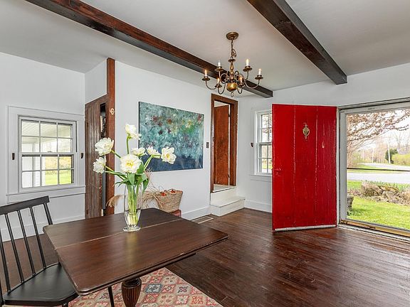 Welcome to the Hartwell house of Spencer Corner. A home oozing with charm and history. A birth date that predates the birth of America this home circa 1769 offers the sense you have time traveled to 200 years ago with big views across the street of open fields and Winchell Mountain. Enjoy sunsets from your front yard as it sets behind the Taconic Mountains. Enter the home from the front door, a piece of living history. Made to protect the homeowners during the Revolution from intruders. Past the sturdy red door lies the dining room with beamed ceilings and hardwood floors. Also tucked in a corner is a little cupboard underneath the stairs. The living room offers a comfortable amount of space with antique wood detail, and views of Spencer Corner. The kitchen offers a large window allowing light to stream in, and open concept shelving. The primary on the first floor provides easy living with ample light, hardwood floors and a full bathroom with a walk in shower next door. Another structure connected by a carport or covered entertaining area could be used as a office, workspace, art/yoga studio or simply as storage. Enjoy spectacular sunset views of fields and Taconic Mountains from this property. An outdoor enthusiast delight: close to Rudd pond for swimming, Harlem Valley Rail Trail for walking and bike rides, and the Appalachian trail for hiking. Just a short drive to Catamount Mountain for skiing. This darling antique is just a few minutes from the center of Millerton, NY. which offers movies, dining, antiquing, farmer's market and so much more. NYC is two hours by car and Metro North train service just 20 minutes away.
