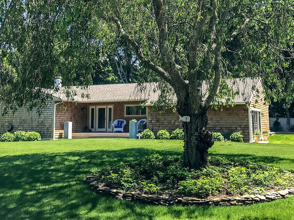 This property is located on a private cul-de-sac with its own strip of land on West Neck Bay. This sun- filled ranch has undergone a complete transformation from its original roots to the perfect modern home. This renovated three bedroom two and a half bath home is set up for entertaining, from the cook's kitchen opening to a rear deck for great summer barbecues, or the spacious great room with vaulted ceiling. There is access for kayaks and paddle boards from your own private spot on the bay, and a great place to take in the sunset on the water. It's the perfect beach on the island.
