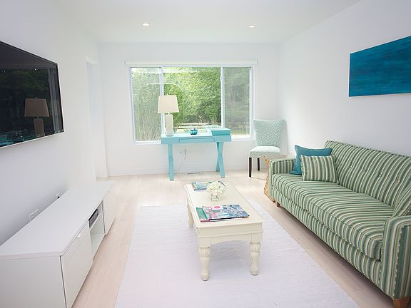 This stunning, fully-renovated six bedroom, four and a half bath, 3,500 +/- sq. ft. contemporary in Georgica is ready to move in. Brand new eat-in kitchen with over-sized windows overlooking contoured, hilly green grounds with white bamboo-floored dining room and den, along with two junior master suites and one and a half bathrooms make up the first floor. While on the second floor you will find two en suite bedrooms, including a large, private master suite with terrace, large walk in closets and master bath with large marble soaking tub and steam shower. The lower level is an added 2000 +/- sq ft of exquisitely finished space with a state of the art, travertine basement with private entrance and two bedrooms and one bathroom. Outside the grounds are impeccably maintained with a new blue stone patio and pergola, in ground pool, and outside private shower. The property is a short distance from the Village and Main Beach.