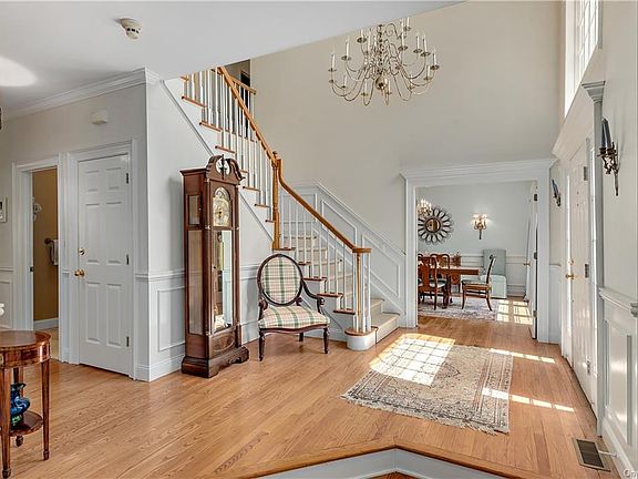 SUNSET VIEWS - From over two, beautiful acres in a most desirable neighborhood. Gorgeous grounds with flowering plantings and a flat rear lawn. Classic and immaculate Center Hall Colonial. Impeccable interior with gleaming hardwood floors, raised paneling, 9 ceilings and rooms with great proportions. Dramatic Two-story Entrance Hall. Great flow with sunken Living Room and Formal Dining Room. Country Kitchen open to Family Room with Fireplace for today s lifestyle. Four/Five Bedrooms including spacious Master Suite. Large finished Basement with ample room for Recreation Room, Gym, Media Room. Pool site. Easy access to shops, restaurants, the town park and John Jay Schools.