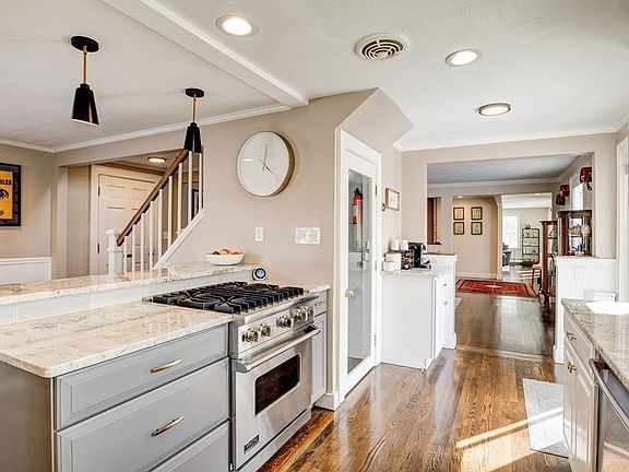 Where old world charm meets modern amenities, get ready to fall in love with this iconic west side expanded cape, tucked away on a quaint side street yet close to major highways, minutes from downtown & Barrows elementary. Upon entering you're greeted by a neat mudroom open to an updated EIK w/bar & built in seating. Adjacent dining room is spacious enough to host large parties with a whiskey room that is sure to be a guest favorite, equipped w/wet bar & built ins. Huge great room w/feature wall & access to beautiful fenced in yard, plus full BA, complete the main level. Head upstairs to find an incredible primary w/vaulted ceilings, walk in closet, & spa like BA plus 3 additional beds, updated BA, & laundry. Finished basement features an epic home gym, bonus rec room & plenty of storage. Irrigation, A/C, updated systems, hardwood throughout, heated garage, radiant bath floors, plus so much more. Here's your chance to make this beautiful home yours for years to come in a great town!