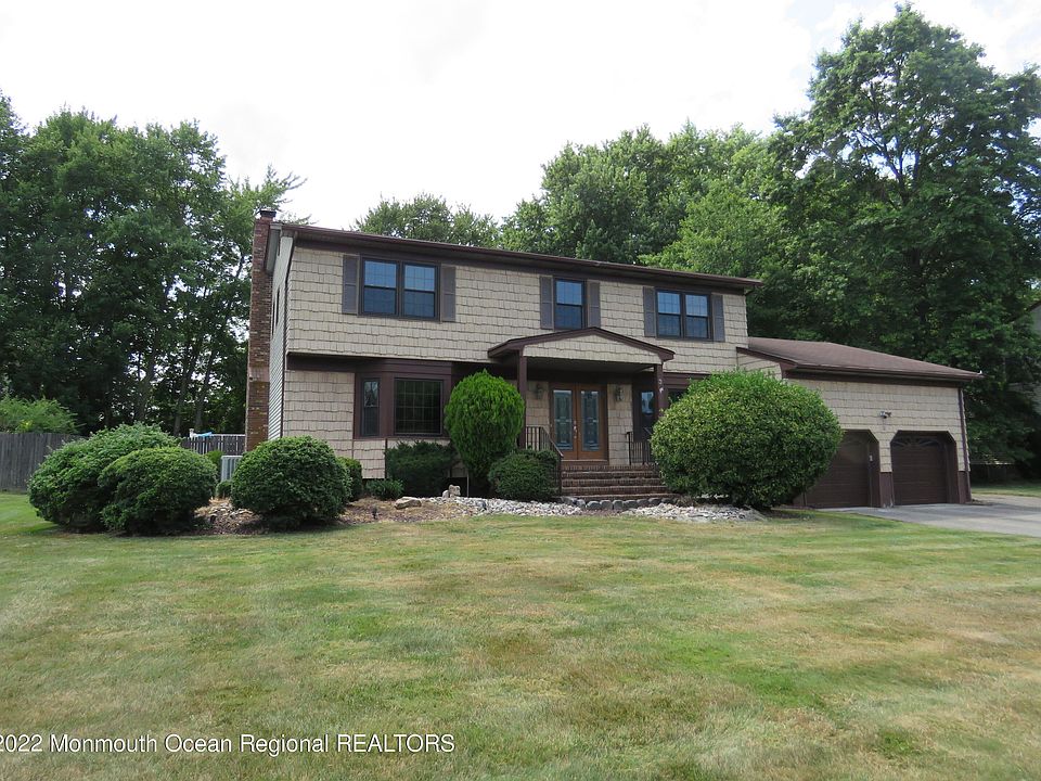 This Manalapan Township 5 bedroom 2.5 bath colonial with full basement and great backyard is here for you. Inside this home you have the maple floored entry & oversized formal living room, which the Owners used as their formal dining room.  The original dining room was their den. The family room offers a ''Carrera'' marble walled gas fireplace, porcelain tiled flooring plus slider to the Trex quality 16x22 deck and separately fenced 24' above ground pool. The remodeled kitchen has an abundance of 42: maple cabinets, pantry, GE Profile appliances, oversized eating area plus another slider to the lower level patio and the rest of the open backyard backing to conservation woods. The 2nd level offers new stairs, maple floored hallway and into your totally remodeled master bedroom with gorgeous master bath having a 5'5" soaking tub plus stall shower and double sinks vanity. There are also 2 walk in closets. The addl bedrooms, including one on first floor, are all oversized. The main