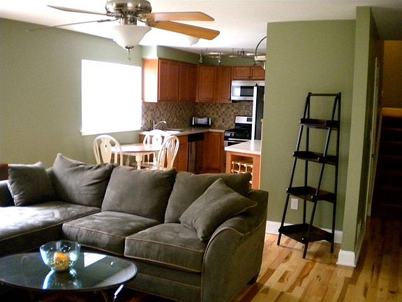 Beautiful 3 Story 3 bedroom town home located in Lakeside Estates. Enjoy the views of the lake in this peaceful location. The first floor features a living room with a gas built in fireplace, a flat screen t.v. and hardwood floors throughout. The first floor also includes a bright kitchen with a full stainless steel appliance package and a powder room. The second level features 2 bedrooms (one with vaulted ceilings and a flat screen t.v.), a full bathroom and washer and dryer. The third level is the master bedroom including vaulted ceilings and a walk in closet fit for a king or queen. There is a slider from first level to outdoor deck with paver patio area. This town home is mostly furnished including a kitchen table, coffee table, bedroom box springs, a dresser, throw rugs and night stands.