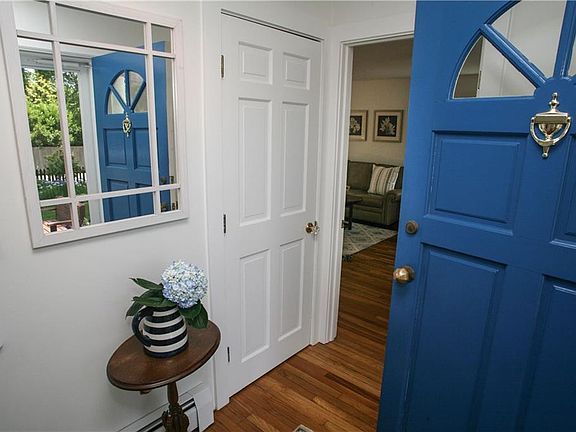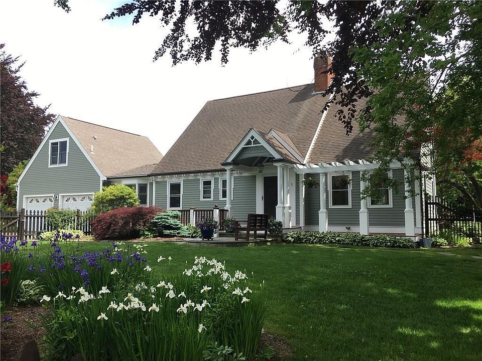 Nestled in the Estate area of Newport on almost a full acre of mature landscaped grounds, this striking open Cape design gives you both privacy and convenience. From the entry hall, step into the spacious, bright front-to-back Living Room, with beautiful hardwood floors, cozy fireplace, and lovely views of the grounds, beyond the sliders and deck. The sunny, updated kitchen, with seemingly miles of granite counter space and extra prep sink, opens to the vaulted Dining Room, a few steps below. Dine with your gardens surrounding you and test your green thumb here, while enjoying the beauty of plants and flowers throughout the cool weather months! Sitting between the kitchen and the two car garage, you will enjoy the vaulted Family Room, with access to the awning covered deck, a screened porch, an outside shower and the stunning in-ground pool with waterfall. In addition, the first floor has an office and a half bath. On the second floor, relax in the cathedral master bedroom with adjacent bath, and walk-in closet/laundry room. The guest room, also vaulted, features built-in storage and enjoys the hall bath with soaking tub. On the lower level, a spacious room with full bath has both built-in desks and cabinets, making it a perfect spot for teens, overflow guests, a project room or a "Man Cave." The third bedroom suite above the garage offers your guest private access and a deck!