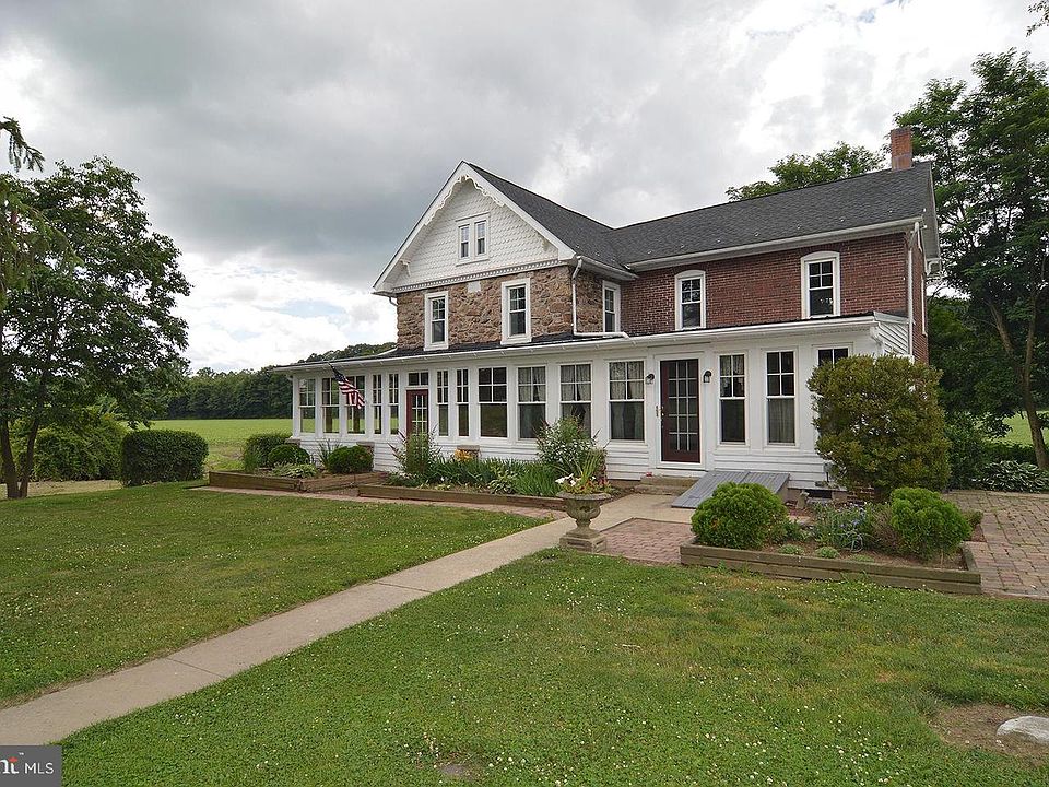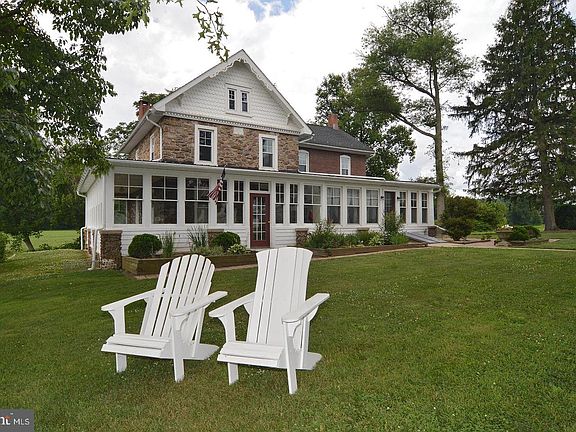 103+ Acre Circa 1758 farm according to tax records has been in the same family for centuries. This stately colonial farmhouse has had an authentic facelift in the last few years. With love, the heir to this property has painstakenly put in a new septic system (public water), installed new steel roofs, upgraded electric with a 200 amp service, replaced old plumbing and replaced the windows . The stone fireplace has been refurbished and refinished, the entire first floor repainted with colonial colored woodwork and all the wooden floors refinished. A beautiful wrap around enclosed porch is a great place to sit and have a panoramic view of farmer fields. It is very unusual to have a formal living room with a beautiful staircase to the second floor in addition to a cozy family room with a stone fireplace. There is a cute room off the living room to be used for a laundry room or small office. There are 4 bedrooms upstairs and a large bathroom with additional storage. This property would be great to board horses. There is a 4 story bank barn with 6-12 stalls plus plenty of room for other livestock. Additional out buildings include a corn crib, hay barn, implement shed (including a John Deer Gator and riding mower) and a carpenter shop with a cold cellar below. There are approximately 85 tillable acres that can be farmed or rented to the present farmer for added income.