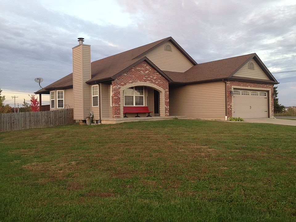 This attractive home sits at the entrance of Whitehawk Estates, a fantastic community of growing families and retirees. A 3 bedroom, 2 bath beauty this lovely home is hard to ignore. At first approach a brick archway trimmed in white stone create in itself a spark of fantastic curb appeal. The bench friendly covered porch and main entrance lead through to a modern open floor plan. Just inside two bay windows, a sliding glass door and three addition natural light sources illuminate the connected living room, kitchen and dinning area. In addition to this homes all electric utilities the living room is accented with a wood burning fireplace great to curl up to in the winter months. Following the hardwood flooring to the right of the entrance will lead to all three rooms including the master suite. Complete with a vaulted ceiling, carpeting and personal access to the covered deck, this suite also has an attached master bath. The bath is a real treat, with one vanity atop tile flooring this master bath hides away a spacious shower and whirlpool jetted tub. A separate laundry room with an entrance for the attached garage and the additional bath also reside just off the hardwood path and hallway. Other features important to note consist of a main level with lots of cabinetry, closets, vinyl siding, gutters and a covered natural wood decking at the head of a capacious partial privacy fenced yard. There even still lies great potential with an unfinished basement, A/C, furnace and sump. Please feel free to contact me, Erin Gruntman, at anytime. (314-651-2668 or edrayton1@live.com)