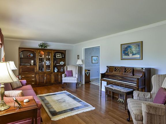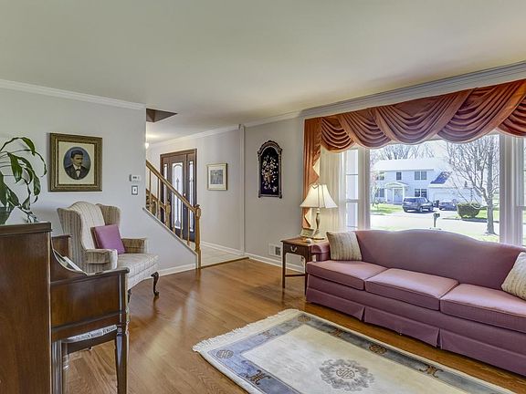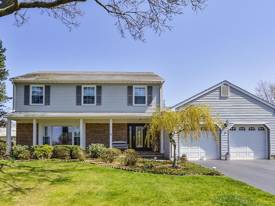Updated, well maintained & move-in ready 3 bdrm, 2.5 baths, FULL BSMT, 2 car garage Colonial located in the desirable ''Meadowood Estates'' community. Paver walkway & updated leaded glass front entry door.Eat-in kitchen w/refaced cabinets, custom cabinetry, corain counters, bow window, accent lights & ceramic flr. FR opens to kit w/custom stone gas burning frpl, crown molding, wood flr, new custom 9' sliding door leading to Timber Tec deck w/Sun Setter awning & private yard fully fenced. LR/DR w/picture window, hdwd flrs & dec molding. Master Bath & Main Bath completely renovated. Side yard w/retaining wall & garden pavers. Thermal windows thru-out. Sprinkler system. Timberline roof. Leaf guard gutters. HWH 2015.Heater & A/C 2007.Close to major transportation & shopping. Top-rated scho