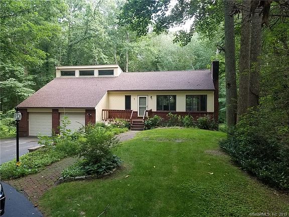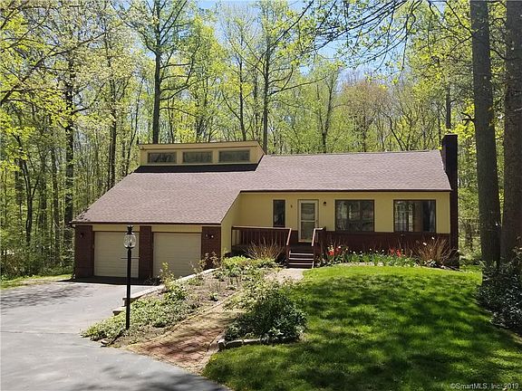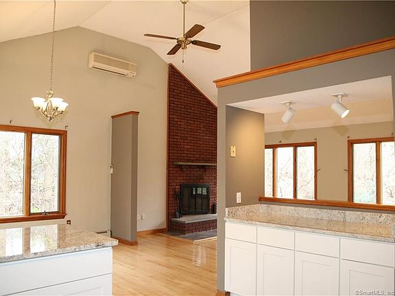 VERY DECEIVING from the exterior. Interior boasts CATHEDRAL CEILINGS, SKYLIGHTS, A FIREPLACE, some HARDWOOD Flooring and it's OPEN, AIRY, and BRIGHT. LARGE LIVING ROOM, open to the dining area which has sliders to a Large Rear DECK and a HOT TUB on lower patio area. A BRAND NEW KITCHEN w/ Maple cabinets and GRANITE Counter tops PLUS...STAINLESS APPLIANCES. There are Three bedrooms PLUS an office/nursery/or craft room on the same level as the MASTER BEDROOM which has a w/FULL BATH, A VAULTED CEILING and a Balcony Deck. Lower Level Exercise and/or Rec Room in Basement Level. AMPLE storage throughout the house. Situated on over 2 ACRES with Lots of perennial flowers and an easy access driveway with TWO ENTRANCES.
