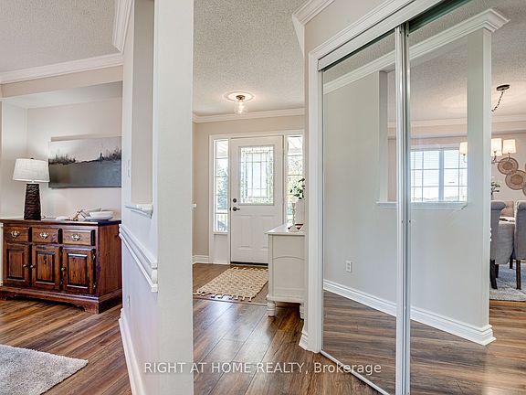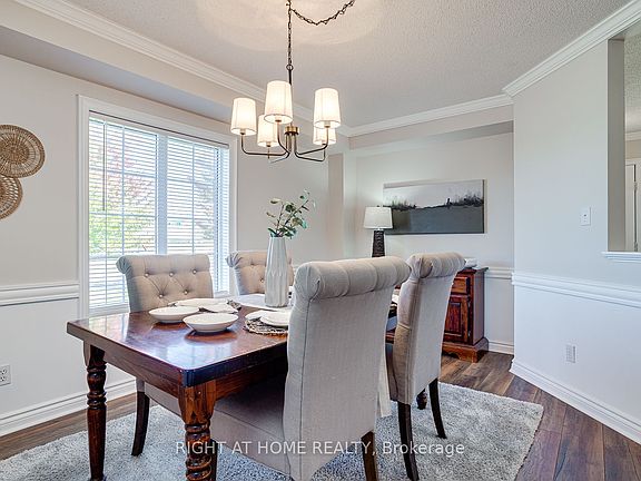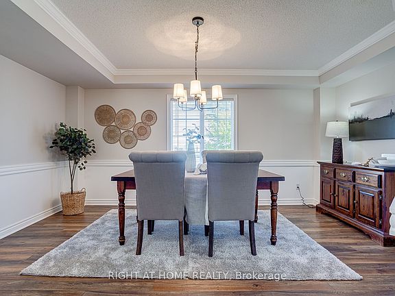 Welcome to this beautifully maintained two-storey brick home, perfectly situated on a premium lot with no houses behind and just minutes from town. From the moment you step inside, the craftsmanship stands out; wainscoting in the front hall and dining room, crown moulding throughout, and a striking coffered ceiling in the kitchen. The main floor is bright and spacious, featuring a large dining room that flows seamlessly into the updated kitchen with an island, stainless steel appliances (fridge and stove 2018, dishwasher 2023, microwave and beverage centre 2025), pot lighting, and a walkout to the back deck. The kitchen opens to the living room, where a gas fireplace framed by a custom-built feature wall creates a warm and elegant focal point. A convenient powder room and main floor laundry with direct garage access complete this level. Upstairs, the primary bedroom includes a four-piece ensuite, while two additional bedrooms and a well-appointed main bath provide comfortable family living. The finished basement offers a welcoming and versatile space, highlighted by wainscoting, an electric fireplace set against a floor-to-ceiling stone feature wall, and a multi-purpose room ideal for an office or guest area. Step outside and enjoy the private backyard, featuring a heated inground pool with a newer liner (2019), pool pump and chlorinator (2022), and plenty of room for entertaining. With no rear neighbours, youll appreciate the peace and privacy of this setting. Additional updates include a new furnace (2022) and roof (2014). A charming front porch enhances the curb appeal and completes this move-in ready home. This is a solid, beautifully cared-for property with standout details, thoughtful updates, and a backyard designed for both relaxation and fun, one you'll want to experience for yourself!