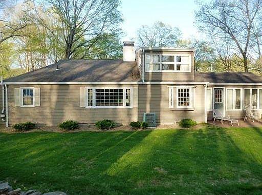 Executive ranch with a private 3rd bedroom on the second level. Outstanding one level living. Updated kitchen with oak cabinets, granite counter tops and.appliances. Large living room with fireplace and a view to the wooded back yard fro the sun filled windows. Formal dining room with built-ins. Generous master bedroom with hardwood floor and spacious 2nd bedroom. Plenty of closet space. Heated sun porch to enjoy and watch the world go by. Partially finished basement with fireplace. Beautiful perennial gardens. Covered front porch. Updates include replacement windows, central air and added insulation in the attic and walls. PUBLiC water and sewer.
